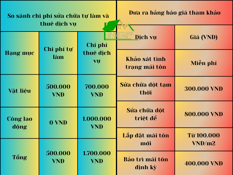 Các hạng mục sửa chữa và chống dột mái tôn tại quận Tân Bình :