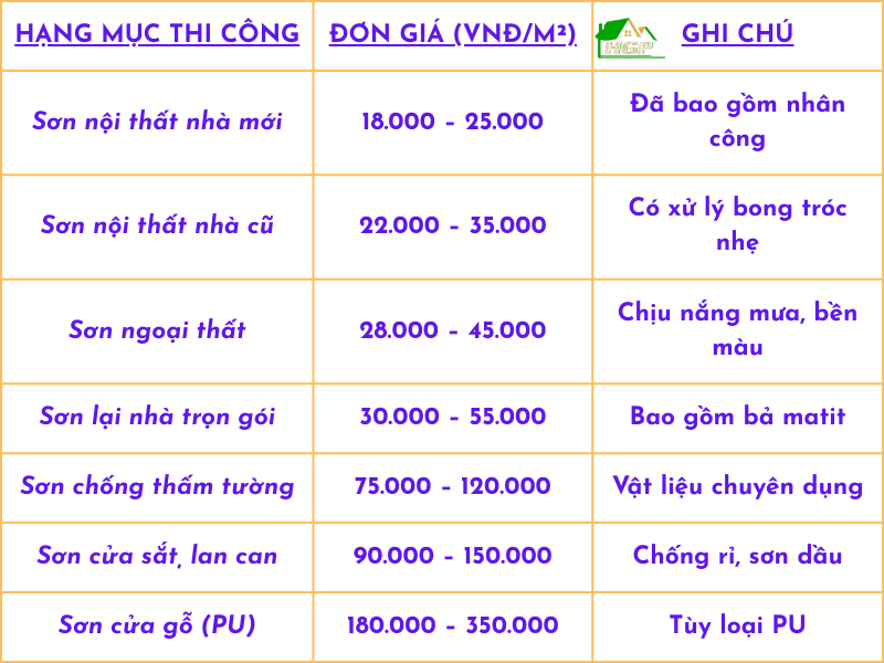 + Sơn phủ từ các hãng uy tín (Dulux, Jotun, Nippon, Kova — tùy yêu cầu khách hàng).